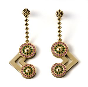 Orecchini: oro, zaffiri rosa e tsavoriti 2015